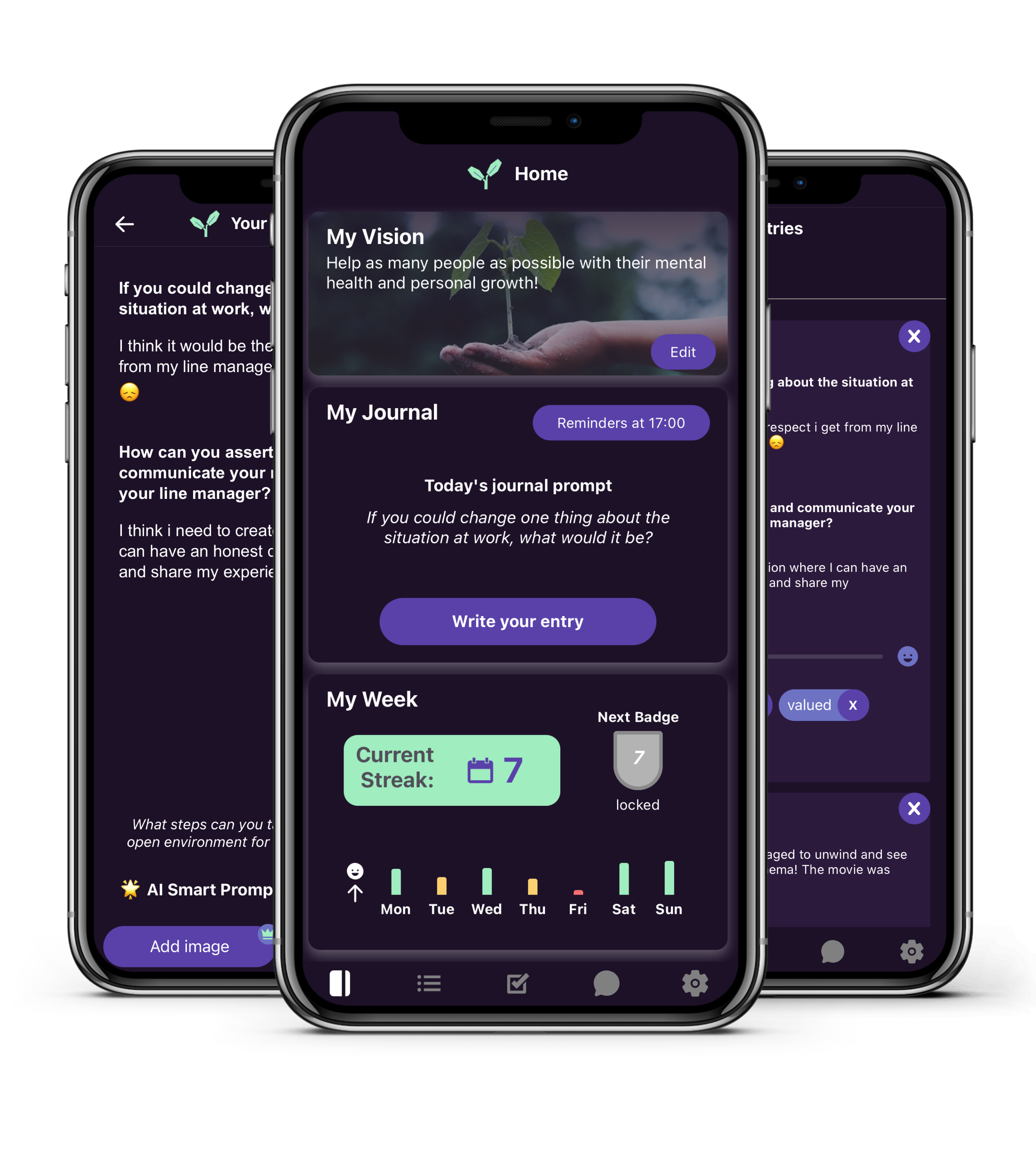 Every growth journey is different - Your daily journal is your way of checking in with yourself and your AI coach.